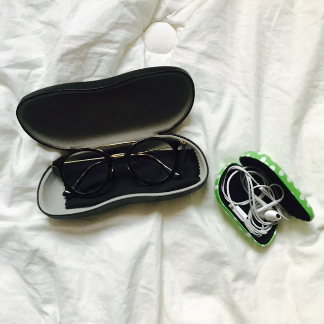 J'ai aussi toujours dans mes sacs, n'importe lequel, cours, ville, sport ... mes lunettes de vue et mes écouteurs ! C'est objets sont plus ou moins grands mais tellement utile et utilisés !